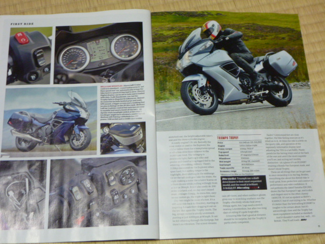 空港で買った 11月号のBike誌にトロフィーの初乗りレポートがありました。