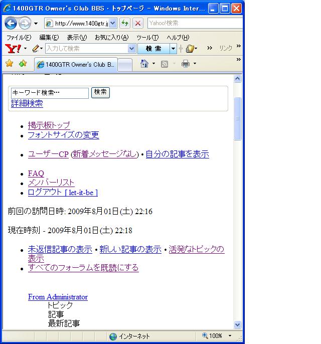 1)CLUB BBS以外の画面は正常に表示される。