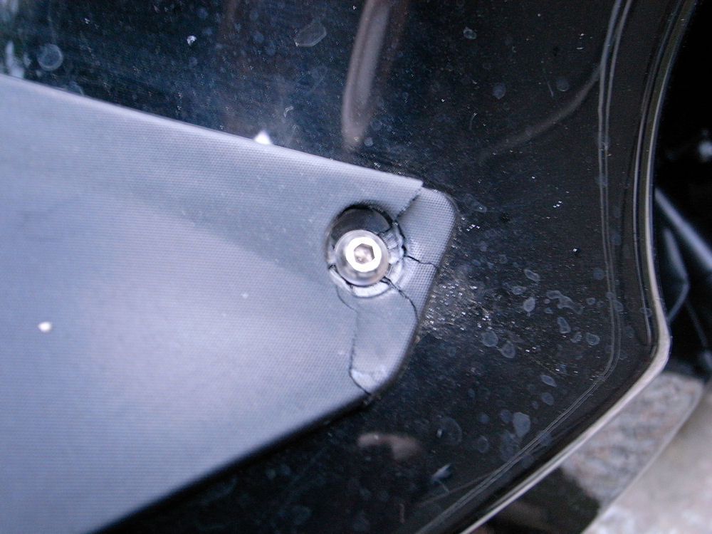 何回かの走行後、案の定、ネジ付近に幾筋ものヒビが・・・・(笑)