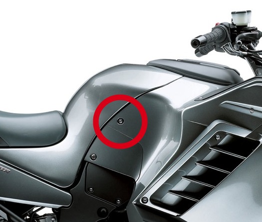 タンクの両サイドに付いて居るカウルの左側にGIproを取り付けたのですが、