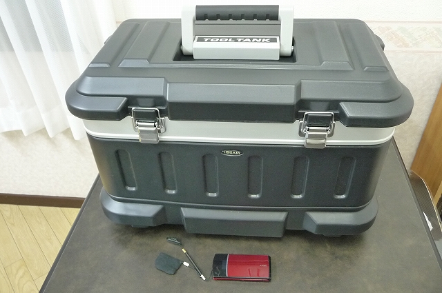 私はアルミ製のボックスを加工して付けておりますが、「他に何か良い物は?」と探していましたら、ありました~http://www.astage.jp/index.htmlツールタンクという商品名で販売されていますが、なかなか頑丈そうな構造です。