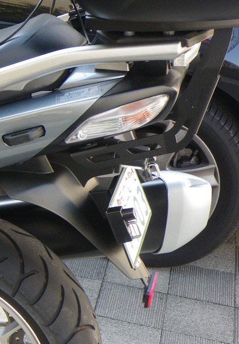 私は、FZ1/FZ1フェザー用ヘルメットホルダー(なぜかprojekt Dのホルダーとそっくり)をGIVIのトップケースの取り付けステーにボルトで取り付けて使用しています。トラブルはありませんよ。