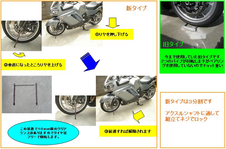 ものすごく不安定で使う気になりません。本来はリアースタンドと一緒に使う物なんでしょうね。^^;