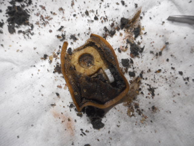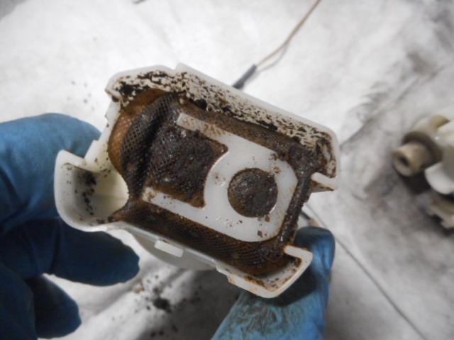 ポンプを分解するとフィルターには、錆び及びテープの様な異物(いつ入ったんだろ・・)が張り付いていました