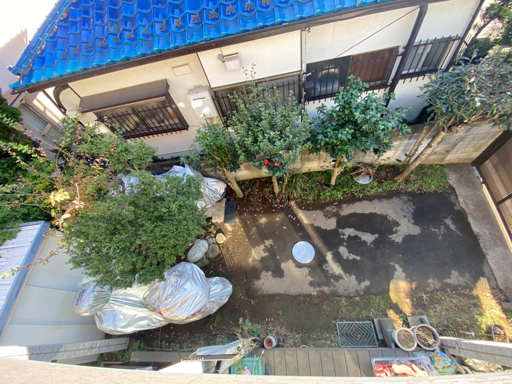 狭いながら樹木が並ぶ自然いっぱいの庭。