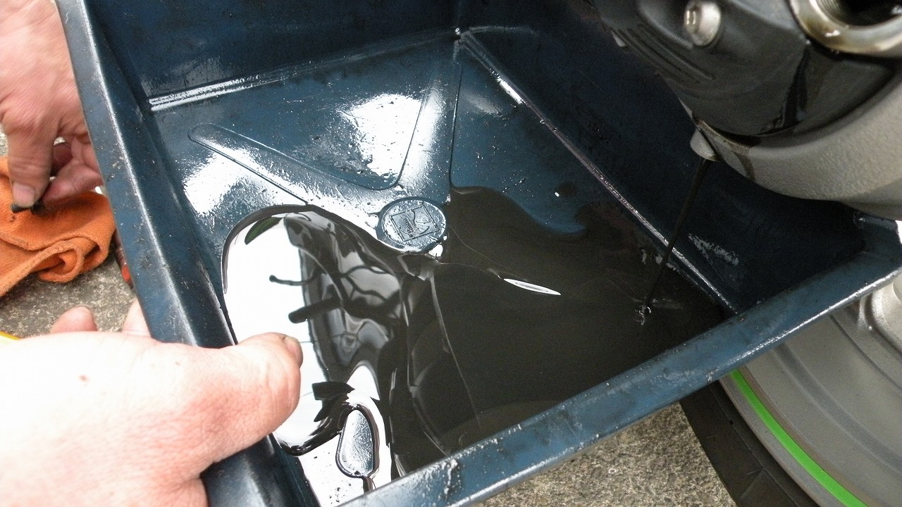 帰宅途中に地元のショップに立ち寄り、アドバイスどおりギヤオイルの交換をしてもらいました。