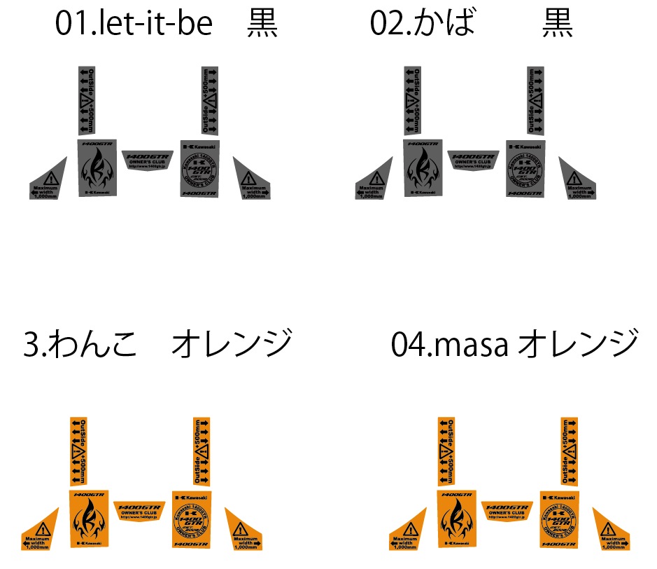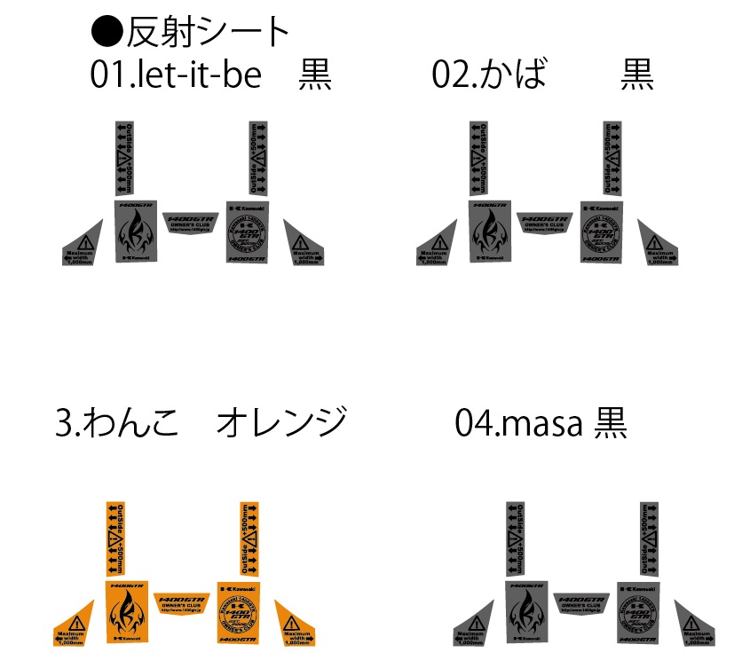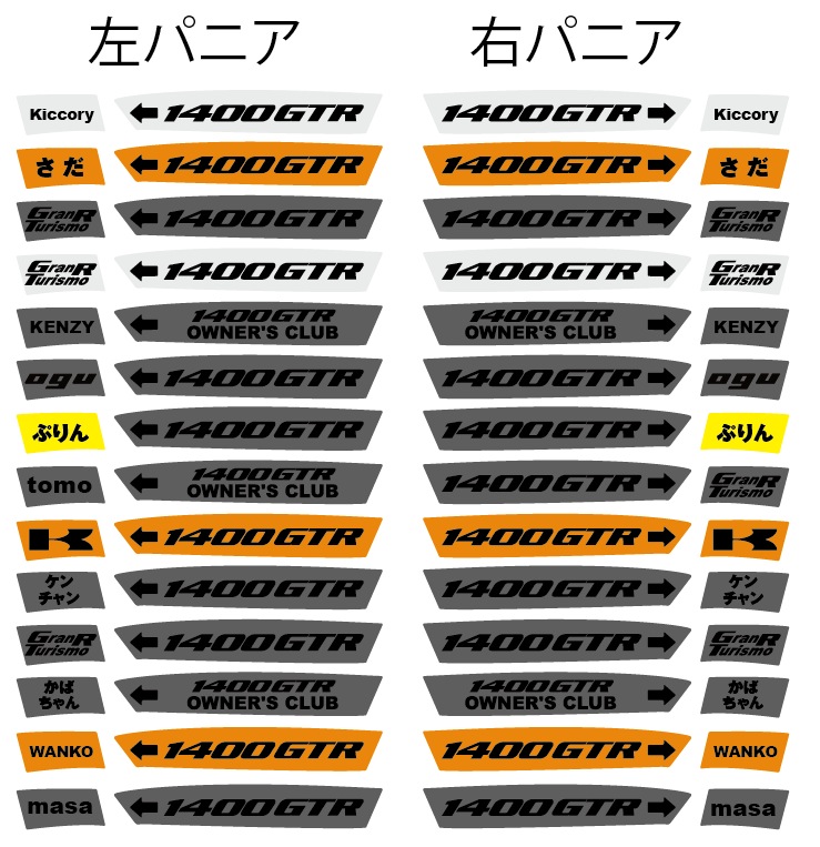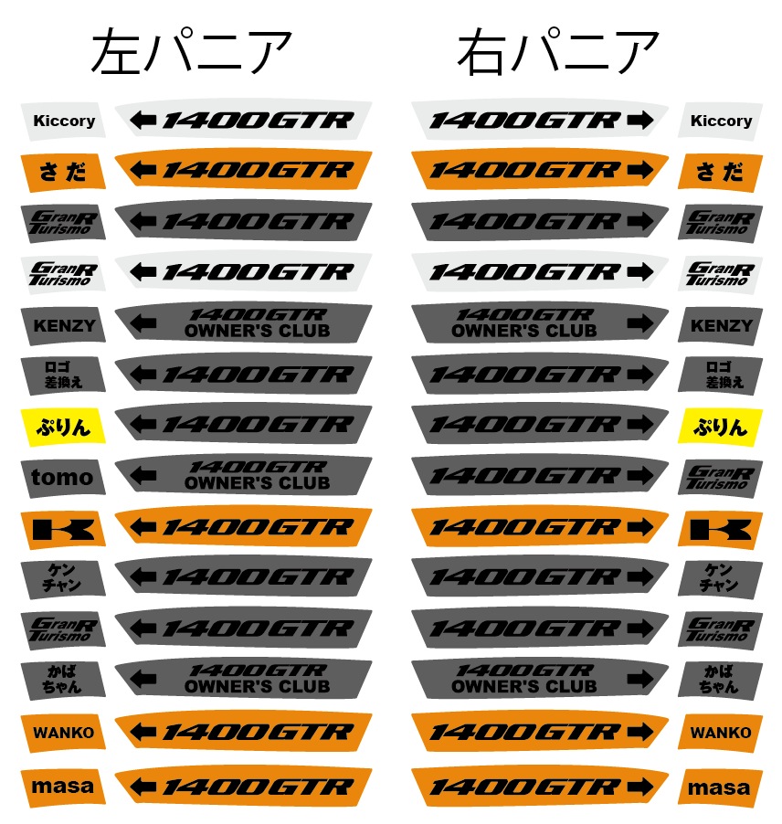 12.かば  黒 右 「かばちゃん」 黒 左「1400GTR OWNER'S CLUB」