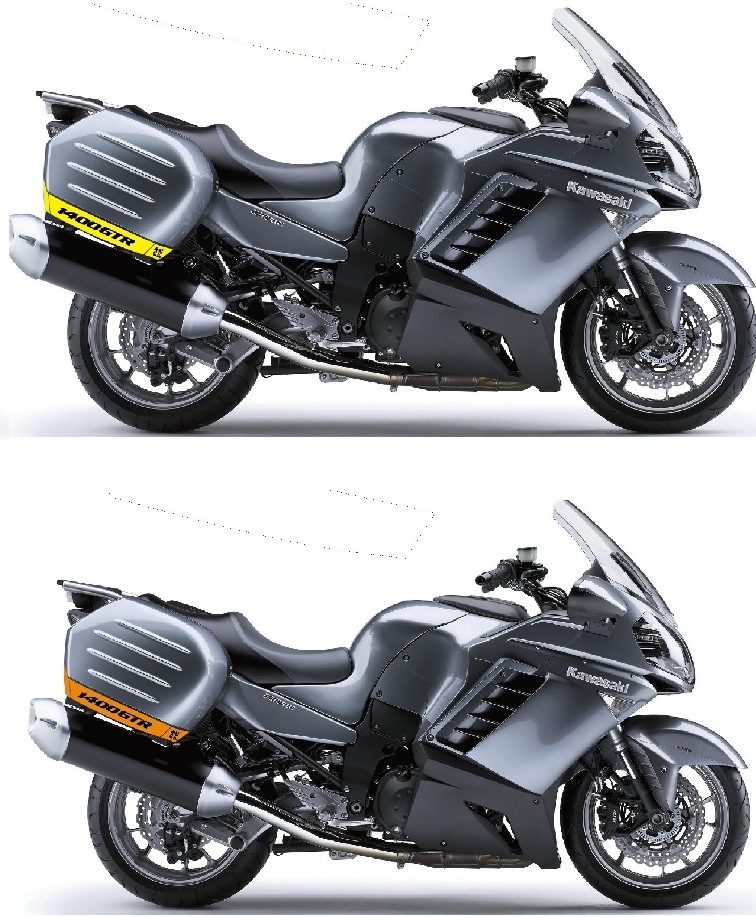 サイドに入るロゴは「1400GTR」の他に「Kawasaki」も可能ですが