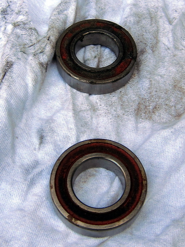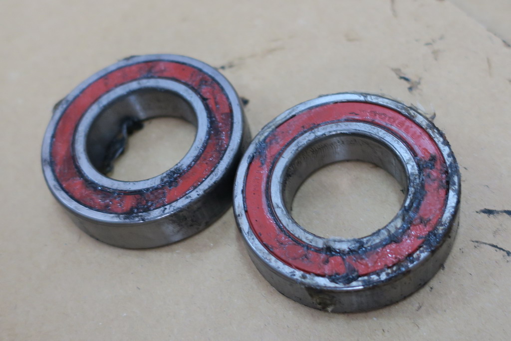 実際に外したベアリング左右2つの内、1つが本体を振ると“カタカタ”と音がしてあきらかに隙間が広がっているのが判りました。