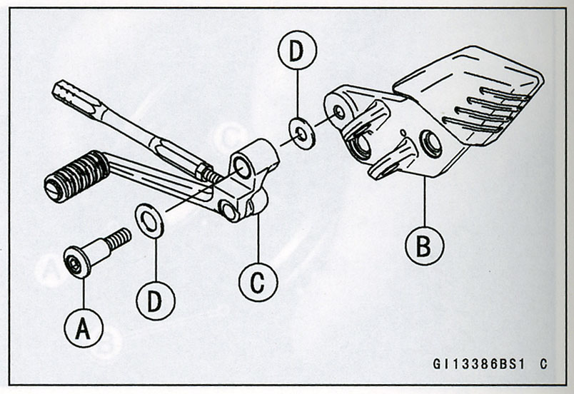 シフトペダルは水平(図2のC)にするのが基本ですが、好みで少し下げておくと長距離走行時、足首が楽です。ステップを摺る走りの方にはオススメしません。