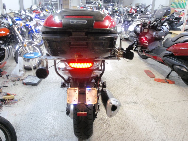 見えないところでは、デジタルボクサー、中華製HID、明るいポジションライト、トップケース内にライト、